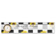 Chequered Pattern consists of alternating black and white squares or rectangles arranged in a chequer board pattern, the number, size, and length-width proportions of the rectangles vary from one flag to another.