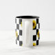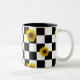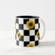 Black and White Chequered & Sunflower Print Two-Tone Coffee Mug