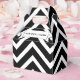 Favour box with chevron pattern in black and white. Neutral colours. Edit name to customize.