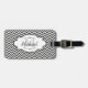 This beautiful luggage tag features a chevron stripe design of black and white on front and back with areas you can customize with your name and last name initial as well as phone number or full address.
