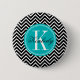 Black and White Chevron with Teal Monogram 2 Inch Round Button