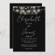 This black and white string lights elegant script wedding invitation can be personalized with your information in chic typography with your wedding website details and your QR code on the reverse. Designed by Thisisnotme©
