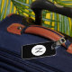 White circle with customizable monogram. Try a different colour that is more eye catching at the baggage carousel. Try a different contemporary font.