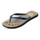 Flowers for your feet are featured on these whimsical flip flops. The background is made up of white circles, with a black outline. On the top, there are five Black Eyed Susans and at the bottom there is one larger flower with a monogram that can be customized.