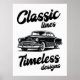 Celebrate the elegance of the past with this striking black-and-white graphic featuring a vintage car and the phrase 'Classic lines, timeless designs.' The minimalist color palette highlights the car's intricate details, making it a perfect piece for enthusiasts of classic automobiles and refined design.