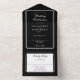 All in one wedding black and white invitation featuring elegant typography and monogram initials. The invitation includes a perforated RSVP card that’s can be individually addressed or left blank for you to handwrite your guest's address details. Designed by Thisisnotme©