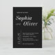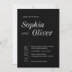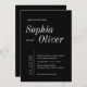 Black and White Classic Minimalistic Typography Invitation. A timeless and sophisticated invitation with a minimalist black-and-white design. Featuring a bold black background, elegant white typography, and classic serif fonts. The back showcases the couple’s initials for a personal touch. Customize this design with your personal info.