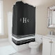 Our simple and elegant shower curtain adds a dose of chic, classic style to your bathroom, in crisp black with a five stripe bottom border in crisp white. Personalize with a three initial monogram in the centre, making this shower curtain a beautiful and unique gift for newlyweds or new homeowners.