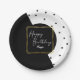 A fabulous stylish look for a feminine themed birthday party, this contemporary design features scattered confetti polka dots in black over a white background on one half of the design with a solid black colour block on the opposite half. A golden double frame with matching black background surrounds the centre text in beautiful style. Lovely handwritten script type face spells out "Happy Birthday" in large white lettering to add emphasis to the happy occasion. Personalize the name with the birthday guest of honour's name. Note: These paper plates are available in 2 sizes. Shown here in the 7" size which is a good choice for serving birthday cake and small items, the larger 9" size is a better choice for serving more substantial party treats. Be sure to select the size that best suits your needs.