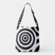 Tote your stuff in style with a cute cross body bag or shoulder tote. This super groovy bag features a fun pattern that has black and white swirls and circles. Different styles and sizes available.