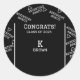 Here is a great way to celebrate your graduate. Custom black and white classic round sticker features the text, "Congrats! Class of 2025." It has a classic black background with an inspirational Adventure Awaits arrow pattern. Also, display your monogram and name in the middle of the sticker. Use the template to personalize.