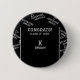 Celebrate your graduate with custom black and white buttons. Featuring the text, "Congrats! Class of 2025." It has a classic black background with an inspirational Adventure Awaits arrow pattern. Also, your desired monogram and name is displayed. Use the template to personalize.