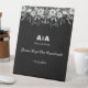 A fun black and white wedding Pedestal sign to Please Sign Our Guestbook on a black background and light grey text.