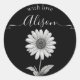 Simple and delicate black and white Daisy flower customizable sticker. Personalize text, font type, and colours to your preference.