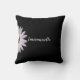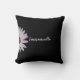 This elegant throw pillow has a white daisy and your name in a script font on a black background. Printed on both sides!