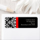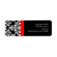 Black and white damask swirl labels with red. Fully Customizable. Matching wedding stationery is available from this store.