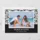 Elegant black and white damask pattern highlights your favourite photo with your greeting in chic lettering on the front and your personalization and message on the back. Select Matte for heaviest paper and high definition for best print quality. *Use a horizontal photo.