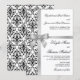 Black and White Damask Faux Silver Ribbon Wedding Invitation