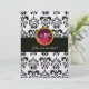 BLACK AND WHITE DAMASK MONOGRAM,red ruby,fuchsia Invitation