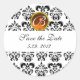 BLACK AND WHITE DAMASK MONOGRAM yellow agate Classic Round Sticker