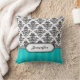 Black and White Damask throw pillow - turquoise