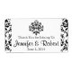 This beautiful and elegant design, called Black and White Damask Wedding, has a beautiful vintage inspired design. The background is a bright white with a single black damask pattern in the middle. Your names go just below with the wedding date. On the back there is room for all of your wedding invitation text. Perfect for a vintage themed style, classic theme, or black and white wedding. This set has invitations, save the date cards, response cards, thank you cards, table number tent cards, envelope seals, wine labels, binders, return address labels and many more day-of wedding stationery pieces, favours, and gifts available. Use the envelope seal stickers for any of your DIY gifts - these are available in both large and small sizes! All elements are printed on our high quality products, they do not include any real gold, jewels, embossing, or other textile elements. All designs are copyright Noteable Expressions, Inc. All rights reserved.