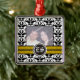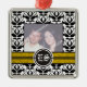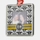 Black and white damask wedding photo ornament featuring your precious photo framed in black and white damask pattern black and yellow bands and your initials in a circle.