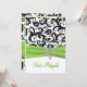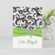 Black and White Damask with Lime Faux Ribbon Invitation