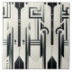This ceramic tile has a cool pattern in black and white that looks like a modern Art Deco wallpaper. The design has lots of shapes that fit together in a fun way, including columns and totems. The pattern also has subtle colour changes and ultrafine details. This tile can make any space look more exciting and stylish.