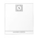 On the top there is Destei's decorative frame design around a custom monogram initial while on the bottom there is a simple line and under it a personalizable text area for a full name or other custom text. The colour scheme is black on white. The colours of this design can be changed to any other colours, if so wished.
