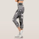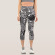A black and white decorative hearts pattern high-waisted capri-length leggings.