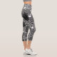 Black and White Decorative Hearts Pattern Capri Leggings
