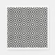 Geometric black and white diamond pattern.