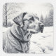 Black and White Dog AI Sketch Winter Scene Square Sticker