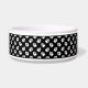 White dog paw print pattern on a black background colour. There is also a personalizable text area for a name.