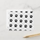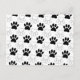 A pattern in black and white of dog paw prints.