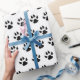 Black And White Dog Paw Print Pattern Wrapping Paper