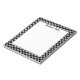 The middle is white and the border is black with a pattern of white dog paw prints. There is also a personalizable text area on the top in black beautiful script font.