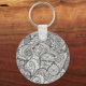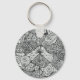 Black and white doodle art keyring.  Image both sides.  Hand drawn doodle in pen.