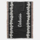 Lovely illustrations of the white Alpine flower edelweiss, decorate the long sides of this decorative throw blanket. The black background, on this floral throw highlights the white edelweiss flowers and the white custom text, across the middle, that reads Edelweiss. Personalize the text to read what you want.