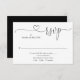 A simple elegant black and white script heart kindly reply RSVP card with your details set in chic typography. Designed by Thisisnotme©