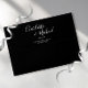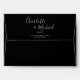 Featuring signature script names, this elegant black return address envelope can be personalized with your names and address details in chic white lettering. You can customize the background to your favourite wedding theme colour. Designed by Thisisnotme©