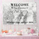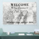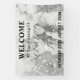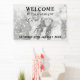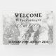 This wedding welcome banner has a classic faded black and white photo of the happy couple in the background. Elegant script and bold font overlays the photo. To edit the text and change the photo click on the personalize button.