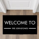 Step into a personalized welcome with this sleek black doormat, elegantly designed to feature the bold statement, "WELCOME TO THE JOHNSTONE'S". With its crisp white lettering and classic underscore, this doormat introduces your home with a touch of sophistication. Perfectly crafted for those who love a clean and modern aesthetic, it invites guests into your space with a warm, tailored greeting. It’s not just a doormat; it's the first hello from your family, customizable to proudly present your surname for all to see.