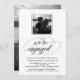 This elegant, modern engagement party invitation features ornate black typography on a white background, with your choice of two photos on the front and the back.
