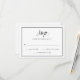 This elegant, modern wedding RSVP card features elegant black typography on a white background, with a black framed border.