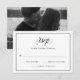 This elegant, modern wedding RSVP card features elegant black typography on a white background, with a black framed border and your photo on the back.