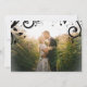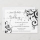 Festive and fanciful black and white swirl wedding save the date invitations. Decorative swirls with leaves and roses, and beautiful fonts with swirl ligatures. Simple, modern and classic clean wedding save the date cards, with your custom photo on the back side of the card.