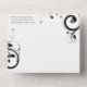 Unique all-in-one invitation with tear-off rsvp card. Festive and fanciful black and white swirl wedding invitations. Decorative swirls with leaves and roses, and beautiful fonts with swirl ligatures. Simple, modern and classic clean wedding invitation, with your custom wedding details.