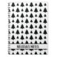 Destei's fun pattern of simple black Christmas fir tree silhouettes on a white background colour. There is also a personalizable text area for a name or other custom text. This design was created with the modern minimalist aesthetic in mind.